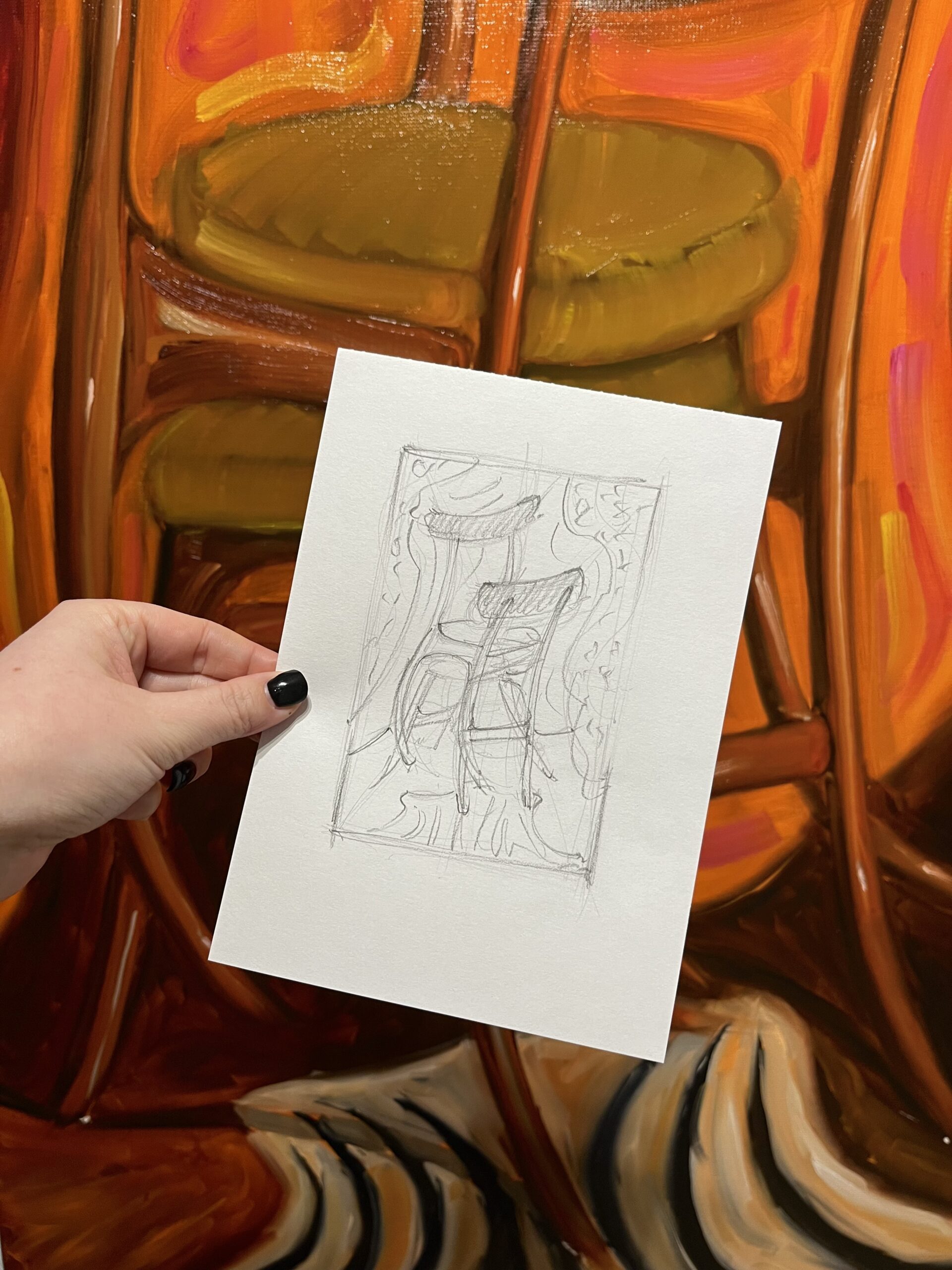 „HAŁASY” | „NOISES” „NOISES” | „HAŁASY” OIL | LINEN CANVAS 140 X 81 AVAILABLE FOR SALE CHAIR INSPIRATION – „HAŁAS” 200-190 DESIGNED BY Rajmund Teofil Hałas.