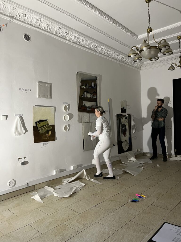 The vernissage was opened with a short performance involving the public in opening the exhibition together.